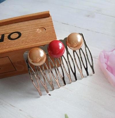 Hřebínek, hřeben do vlasů, zlaté a červené pokovené perly 14 mm (H780)