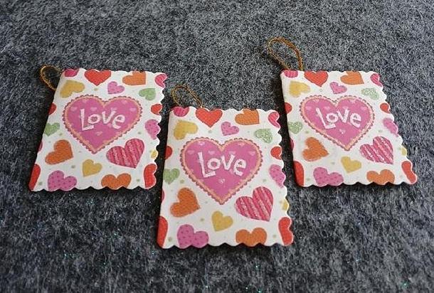 Otevirací ozdobná jmenovka, kartička, visačka na dárky, jsou nepostradatelným dekoračním prvkem při balení dárků. Zabalte dárky a přivažte k nim jednu z těchto krásných kartiček, zdobené lesklou barvou se třpytky v podobě srdíček, při otevření kartičky můžete napsat jméno obdarovaného. Ke každé jmenovce je přidaná luxerová šňůrka ve zlaté lesklé barvě na přichycení.