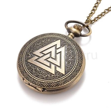 - Kapesní cibulové hodinky s řetízkem - s trojúhelníky, znaky (H679)