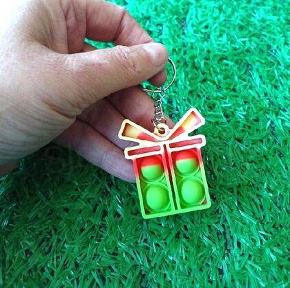 Klíčenka, přívěšek na klíče Fidget s Pop it Toys Krabička s mašlí zelená (D1115)