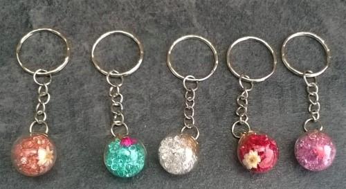 Klíčenka je vyrobena z kvalitního, nezávadného materiálu ze skla. barevné třpytky a sušená kytička. skleněná kulička je z odlechčeného skla. Vhodná na kabelky, tašky, batohy, peněženky, ozdobná dekorace.