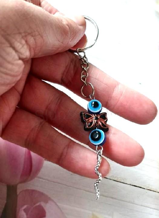 Velmi kvalitní a do detaulu vyrobená klíčenka s přívěškem oko, motýl a had. Vhodné na kabelky, tašky, batohy, peněženky, ozdobná dekorace. Zajimavá kombinace této krásné klíčenky vás určitě potěší.