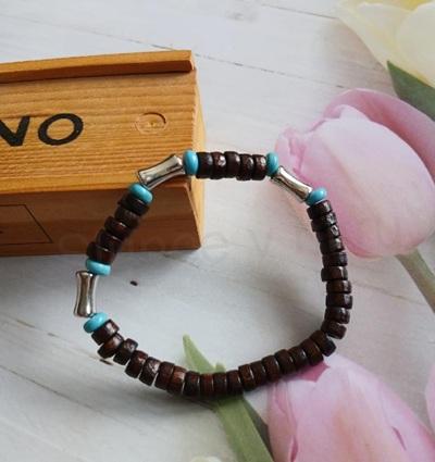- Materiál: přírodní dřevěné korálky, surové, náramek je pružný
