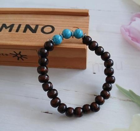 - Korálkový dřevěný náramek s tyrkysem, korálky 8 mm (BC671)