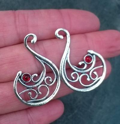 Moderní kované vykládané náušnice, s červeným kamínkem do tvaru kapky, vlny, labutě. Dokonalé svou propracovaností, Náušnice jsou zpracované do detailů, jemné modní vhodné na každodenní nošení a jakákoliv společnost. Náušnice mají silikonové zarážky, lepší jištění proti ztrátě. Jedná se o uměleckou kovařinu.