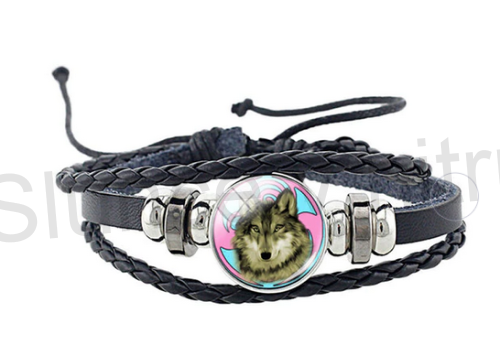 Kožený nastavitelný, náramek s ozdobami pro mladistvé i dospělé s motivem vlka . Náramek je ručně pletený z kůže, hodí se pro všechny a na každou ruku. Velmi moderní provedení. Náramky, jsou příjemné na dotek. Vhodné jak pro muže, tak pro ženy.