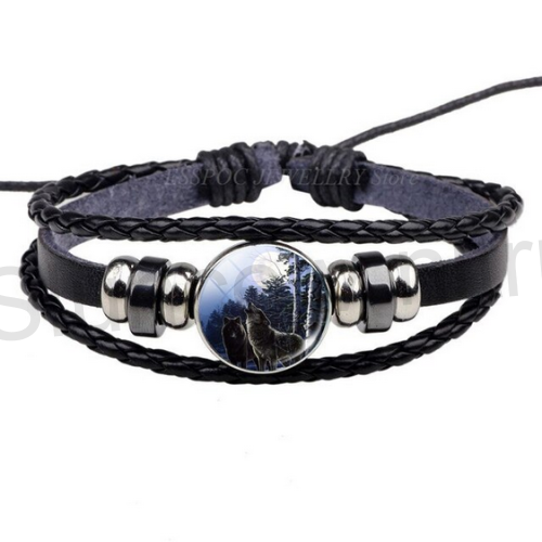 Kožený nastavitelný, náramek s ozdobami pro mladistvé i dospělé s motivem vlka . Náramek je ručně pletený z kůže, hodí se pro všechny a na každou ruku. Velmi moderní provedení. Náramky, jsou příjemné na dotek. Vhodné jak pro muže, tak pro ženy.