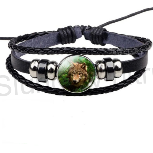 Kožený nastavitelný, náramek s ozdobami pro mladistvé i dospělé s motivem vlka . Náramek je ručně pletený z kůže, hodí se pro všechny a na každou ruku. Velmi moderní provedení. Náramky, jsou příjemné na dotek. Vhodné jak pro muže, tak pro ženy.
