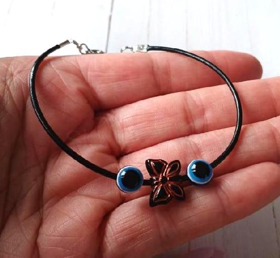 - Kožený ozdobný náramek oko, motýl (BC590)