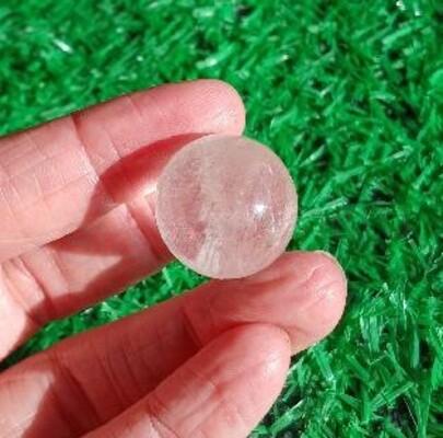 Krásná leštěná koule křišťálu s náznaky duhy, lze použít jako ozdobu interiéru, nebo jako okrasné kameny do zahrad, exteriéru a domovů. Koule je vybroušená z jednoho kamene.
