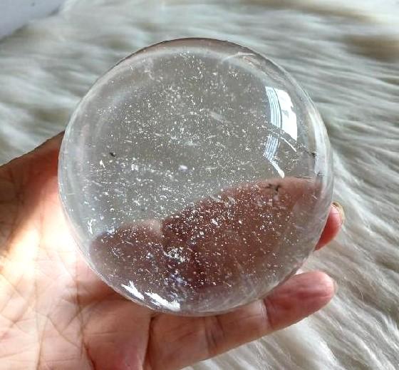 Krásná leštěná koule křišťálu s náznaky duhy, lze použít jako ozdobu interiéru, nebo jako okrasné kameny do zahrad, exteriéru a domovů. Koule je vybroušená z jednoho kamene.