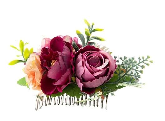 Květinový kovový hřeben, hřebínek do vlasů fuchsiový (H626)