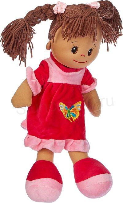 Krásná látková (hadrová) vyšívaná panenka Lucy, z nylonového dresového materiálu, oblečená červenými šaty, hezká vyšívaná tvář, měkce vyplněná. Panenky rozvijí kromě jemné motoriky starat se o svoji panenku, vcítit se, posilovat lásku a cit, také rozvijí dětskou fantazii a představivost. jednoduchá panenka bez baterek a příslušenstvím.