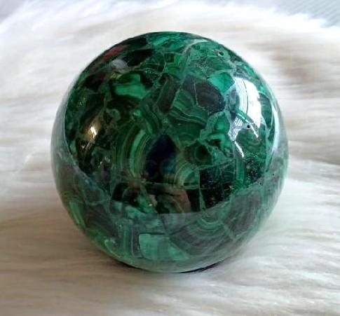 Malachitová koule, lze použít jako ozdobu interiéru, exteriéru a domovů. nebo jen tak do kapsy pro štěstí, talisman atd. Malachitová koule je vyleštěná z jednoho kusu kamene.
