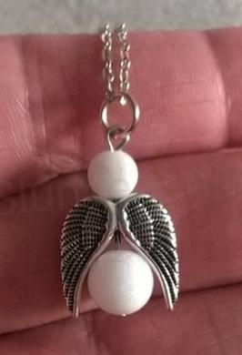 Zajimavé řetízkové provedení náhrdelníku s přívěškem jadeitového ( jadeit bilý) andílka z chirurgické oceli. Andílka tvoří jadeitové minerální kuličky vysoké kvality. Také jsou tvořeny z kvalitních komponentů. Andílek je na kroužku a dobře drží, nemusíte se bát, že by vám spadl, nebo jste ho ztratili. Prosím berte na vědomí, foto je jen ilustrační. Každý kámen je jiný.