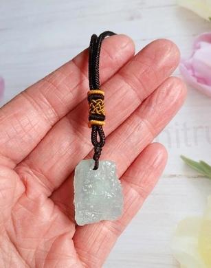 Minerální náhrdelník z akvamarínu (X1853) je krásný přírodní šperk tvořený nepravidelným vrtaným kamenem, který si zachovává svůj autentický tvar i strukturu. Každý akvamarín je jedinečný, takže žádné dva přívěsky nejsou stejné. Minerál je zavěšen na kvalitní nylonové šňůrce s ozdobným posuvníkem, díky kterému lze délku snadno upravit podle potřeby.