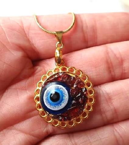- Náhrdelník z granátu s okem na pozlaceném 18k řetízku (X2099)