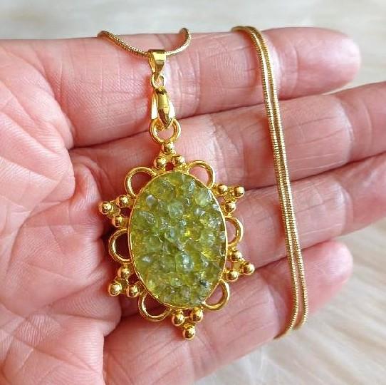 - Olivínový náhrdelník na pozlaceném 18k řetízku (X2146)