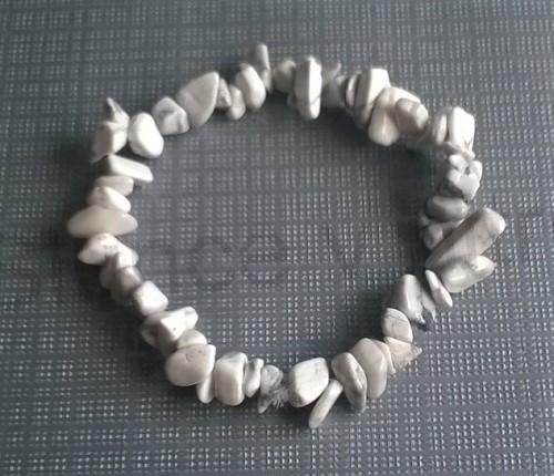 Minerální zlomkový náramek s magnezitem. Náramek je na pružné gumičce, dobře drží a snadno se přizpůsobí. Náramek je moderní, hodí se ke všem modním doplňkům.