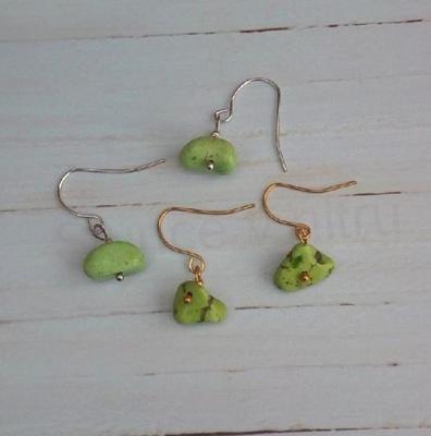 Zajimavé magnezitové náušnice z nerez oceli. Náušnice tvoří magnezitové minerální nepravidelné oválky, hrudky, dobré kvality. Také jsou tvořeny ve zlaté, platinové barvě, hlavně háčků, které jsou zakončeny silikonovou puzetkou. Silikonové puzetky zabraňujé ztrátě náušnic. Prosím berte na vědomí, foto je jen ilustrační, každý pár náušnic je originál. Každý kámen je jiný.