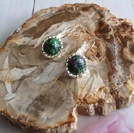 Minerální náušnice s rubínem v zoisitu, kámen 10 mm (X2215)