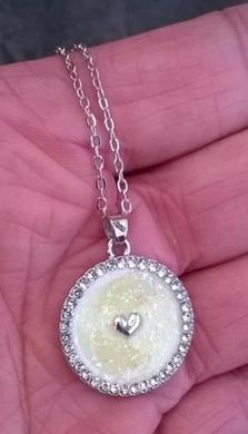 Opálový minerální náhrdelník kruh se srdíčkem (X1287) je nádherný šperk, který zaujme svým jemným třpytem a elegantním designem. Přívěšek ve tvaru kruhu s malým srdíčkem je osázený čirými křišťálky, které se na světle krásně lesknou. Syntetický opál dodává šperku výrazné modré odlesky a působí velmi žensky, romanticky a moderně. Náhrdelník se skvěle hodí k běžnému oblečení i slavnostním outfitům a snadno jej zkombinuješ s dalšími šperky.