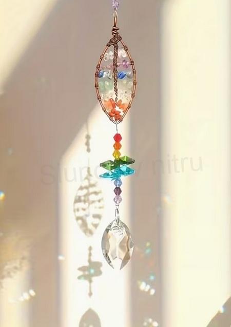 Tento nádherný minerální sluneční lapač světla ve tvaru lístku je vytvořený z přírodních minerálů a kvalitního broušeného křišťálu ve tvaru kapky. Po dopadu slunečních paprsků vytváří jemné duhové odlesky, které rozzáří každý interiér i venkovní prostor.