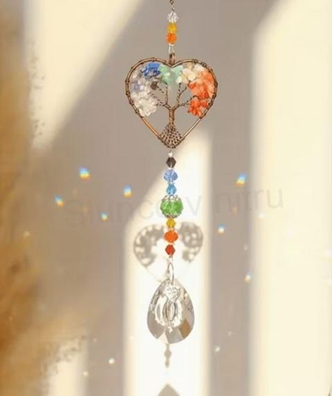 Tento nádherný minerální sluneční lapač světla ve tvaru srdce je vytvořený z přírodních minerálů a kvalitního broušeného křišťálu ve tvaru kapky. Po dopadu slunečních paprsků vytváří jemné duhové odlesky, které rozzáří každý interiér i venkovní prostor.