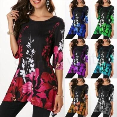 Modní dámské květinové triko, tunika, halenka