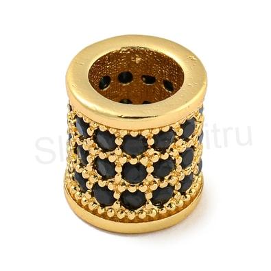 Velice luxusní mosazné oddělovací korálky osázené pravými kubickými zirkony v černé barvě s povrchovou úpravou pozlaceno 18Karátovým zlatem. Korálky mají tvar válec s větší dírkou pro průvlek. Výrobce zirkonům deklaruje kvalitou brusu AAA - tedy velice precizní a prakticky dokonalý brus. Nejvhodnější vkládání mezi různé korálky na náramky a náhrdelníky.