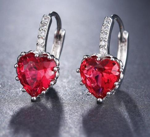 - Kruhové náušnice srdce se zirkony červené (BE1)