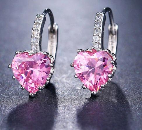 - Kruhové náušnice srdce se zirkony růžové (BE1)