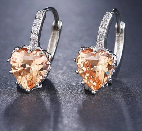 - Kruhové náušnice srdce se zirkony šampaň (BE1)