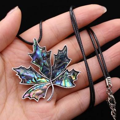 Elegantní zajimavá kombinace brože a zároveň náhrdelníku z přírodní mušle Abalone (Paua mušle) do tvaru lístku. Tato kombinace působí velmi nadčasově. Brož je pevná a dokonalá, není barvená. Dokonalý dárek pro milovníky přírody. Mušle je vybroušená a vsazená do lístku