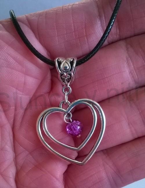 Náhrdelník srdce v srdci a korálkem s ozdobnou přípojkou, která se hodí i na pandora náramek