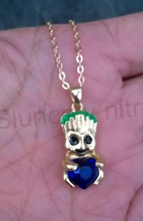 Krásný okouzlujicí řetízkový náhrdelník s přívěškem Gruta - já jsem Grut z oblíbeného filmu Strážci Galaxie v barevném provedení ve zlaté barvě, je vyroben z kvalitního kovu galvanizováno. Hladké, lesklé. Řetízkový náhrdelník se skladá ze 2 dilů - řetízek a přívěšek. Postavička Gruta má barevné smaltování uprostřed je velké broušené krystalové srdce. Nádherná kombinace vytvářejicí zajímavý efekt šperku. Hodí se všude jak na slavnosti, tak výročí.