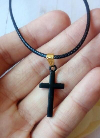 Zajímavé provedení náhrdelníku na voskované šňůrce s přívěškem kříže, kříž. Náhrdelník je velmi modní, pro všechny věkové kategorie. Šňůrka je zakončena karabinkou, přívěšek z ošetřeného kovu.