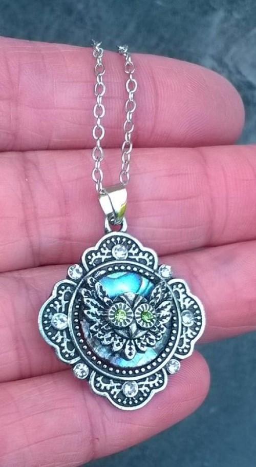 Elegantní zajimavá kombinace přírodní mušle Abalone (Paua mušle) se sovou, sovičkou, sovado tvaru kytičky. kytky, kytka s kamínky. Tato kombinace působí velmi nadčasově. Přívěšek je pevný a dokonalý, není barvená. Dokonalý dárek pro milovníky přírody. Mušle je vsazená do kytičky. Nabizíme 2 varianty barev duhová zelená, duhová růžovo fialová. Vybírejte podle čísel.