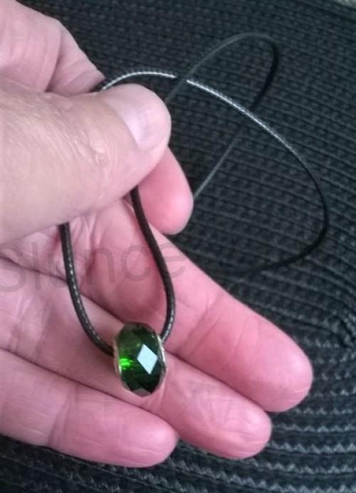 Zajimavý náhrdelník na voskované kožené šňůrce s broušeným přívěškem, korálkem pandora. Krásný jednoduchý šperk, který se hodí na každou příležitost.