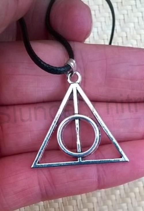 Zajimavémodní provedení náhrdelníku s přívěškem Relikvie smrti na kožené voskované šňůrce nejen pro milovníky této knižní a filmové serie.