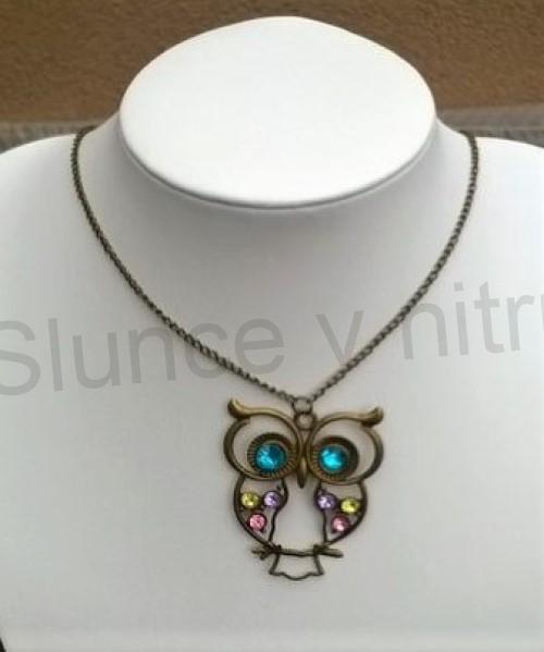 - Náhrdelník s přívěškem Sova v bronzové barvě s barevnými kamínky (BD580)