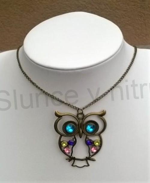 - Náhrdelník s přívěškem Sova v bronzové barvě s barevnými kamínky (BD580)
