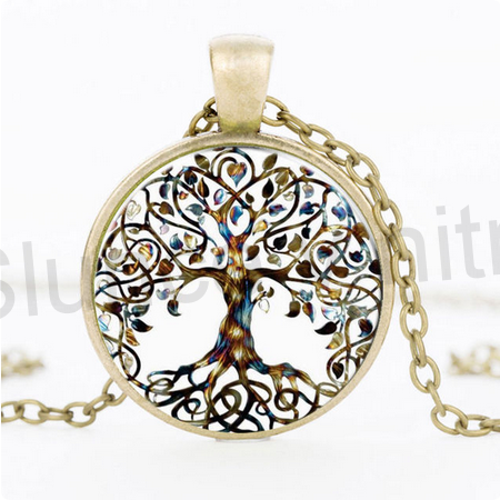 Nádherné řetízkové provedení náhrdelníku s přívěškem strom života. Náhrdelník je velmi modní, pro všechny věkové kategorie. Řetízek je zakončený karabinkou, přívěšek je z chirurgické oceli, řetízek je z galvanizovanýho kovu a skla.
