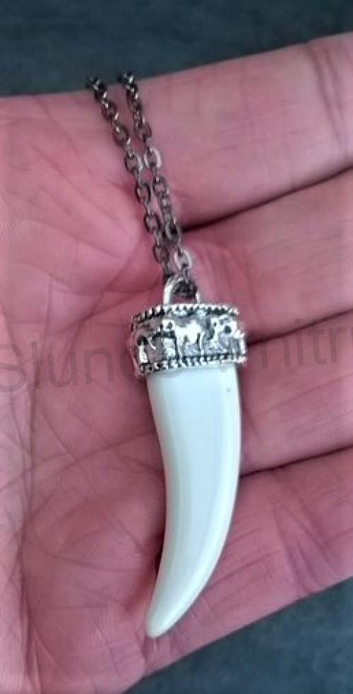 Nádherné řetízkové provedení náhrdelníku s přívěškem včího zuba, zubu vlka z nerez oceli. Náhrdelník je velmi modní, pro všechny věkové kategorie. Přívěšek je z kvalitního galvanizovaného kovu. Přívěšek na světle odraží lesk, krásně se leskne.