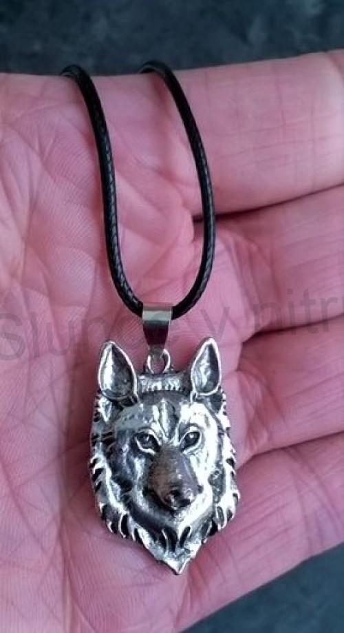 Zajimavý moderní šňůrkový náhrdelník s přívěškem vlka, vlk, vlček v modním provedením.