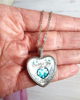 Překrásný náhrdelník s motivem srdce a křídly s nápisem (Tatínkova holčička, byl jsem Tvůj Anděl, teď je Tvůj). Krásný projev lásky otce s dcerou. Náhrdelník je ze slitiny na klasické zapínání plus prodlužovací řetízek.