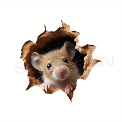 Krásná a roztomilá 3D samolepka, tapetka na zeď myška, myšák s otvorem. Myška je jak živá, vhodné pro dekoraci na stěnu nebo podlahové lišty, sklo atd.
