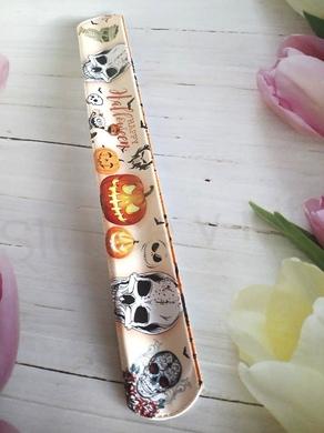 Halloween náramek slap, zacvakavací, samosvorný, navijecí je potištěn jasnými a živými barvami, roztomilými a zábavnými vzory s halloweenskou tématikou. Vnitřek náramku je vyroben z odolného materiálu, vnější strana je obalena měkkým materiálem z umělé kůže PVC, lehkým a pohodlným na nošení. Halloweenský náramek je jasně potištěný vzduchotěsnými a kvalitně vyrobenými okraji. Desing obsahuje oblíbené kresby dětí, které vytváří halloweenskou atmosféru.