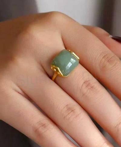 Ozdobný elegantní pozlacený nastavitelný prsten vyrobený z ošetřeného kovu a minerálu jadeitu. Prsten lze nastavit podle vaší velikosti, už se vám nestane, že by byl malý, jemný prsten. Minerály se mohou mírně lišit barvou než je obrázek. Prsten jde mírně přizpůsobit, nastavit.
