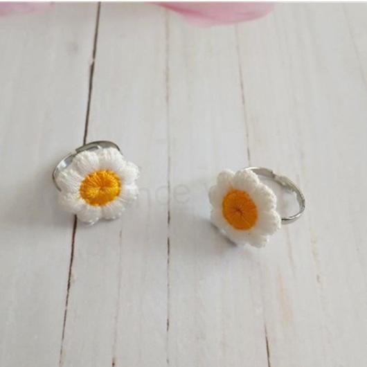 Tento ručně vyráběný prsten s jemnou bílo‑žlutou kytičkou kombinuje lehkost slitiny s měkkou texturou látkového květu. Díky nastavitelné konstrukci jej lze mírně zvětšit a pohodlně přizpůsobit prstu.
